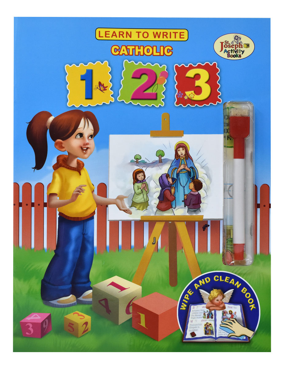 Learn to Write Catholic 123 will help children to learn about their Catholic Faith as they learn to write their numbers. The Wipe and Clean feature allows children to practice repeatedly.