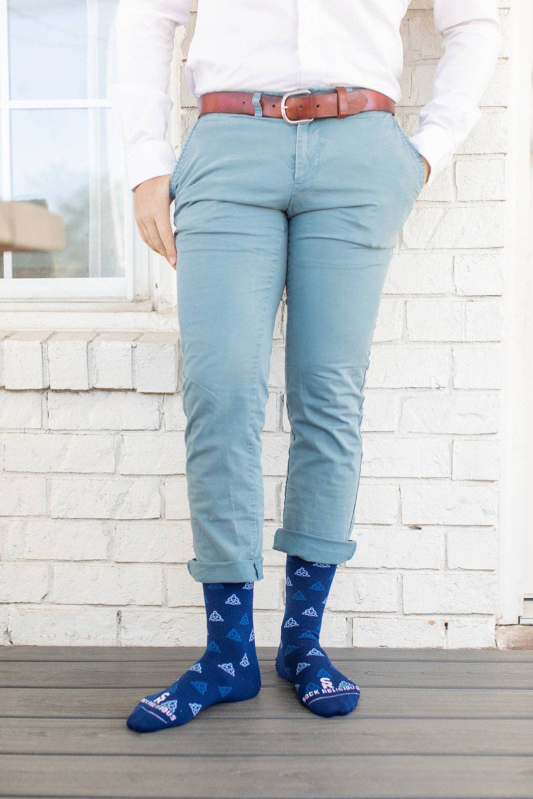 Featuring a repeating Trinity knot pattern, these socks give a subtle nod to one of the deepest truths of our faith (no theology degree required to appreciate them). The classic symbol represents unity, eternity, and the three-in-one nature of God—basically, it’s the ultimate “holy thread” tying everything together. And just when you thought it couldn’t get better, the phrase “Glory Be” is stitched onto the foot, turning even your daily routine into a tiny act of praise.