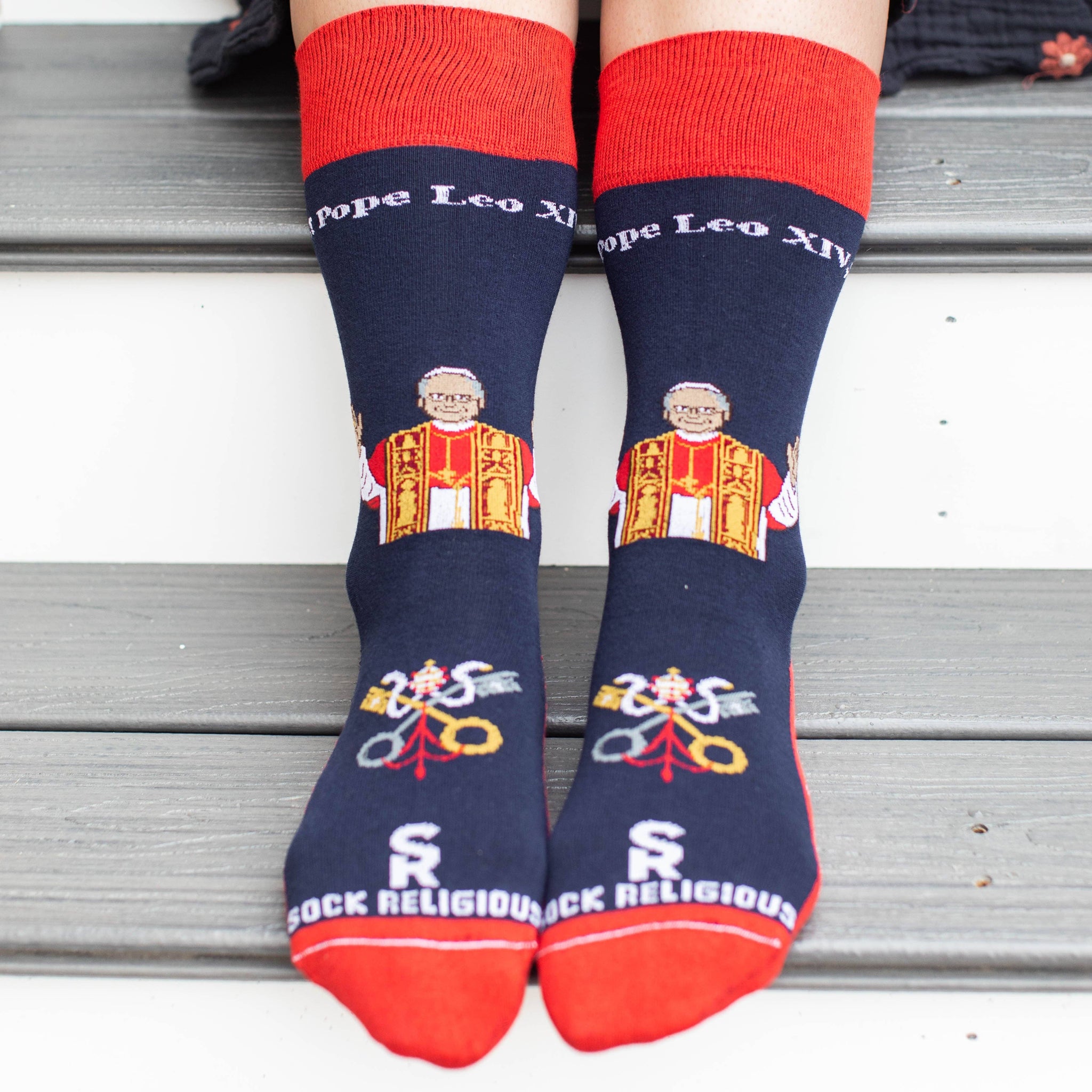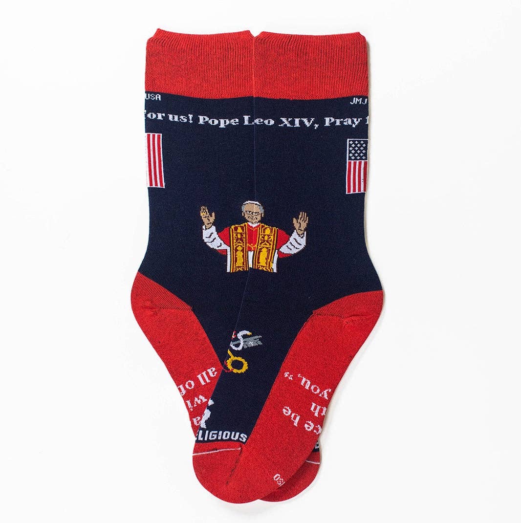 Step with purpose and pride in these Pope Leo XIV Adult Socks, honoring the first American pope. Whether you're heading to Mass, sitting in theology class, or just crushing your to-do list, these socks are a quiet but powerful way to celebrate a groundbreaking moment in the life of the Church.