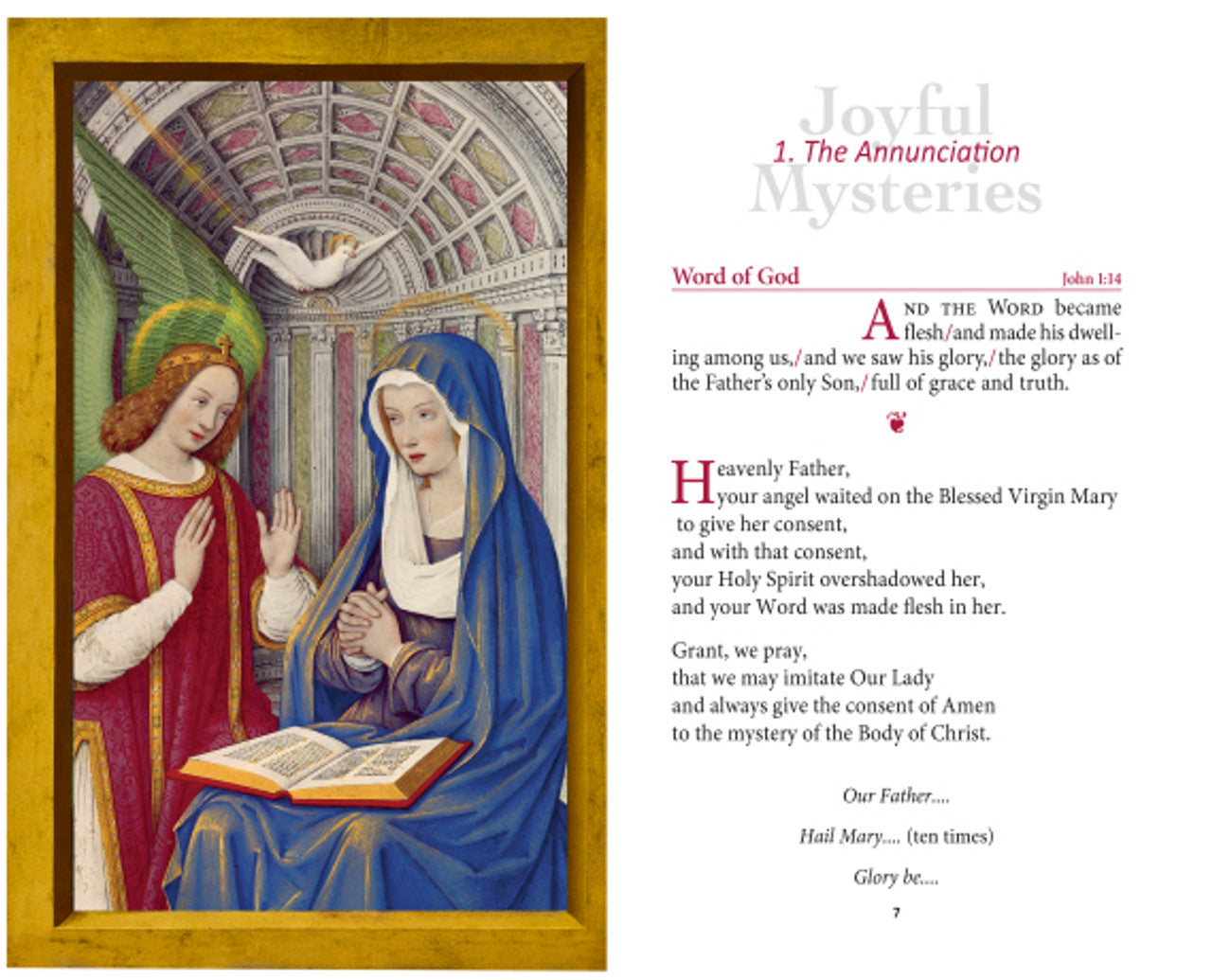 Mary, Jesus' first tabernacle, leads us to adore and follow him in all the joys, lights, and sorrows of this earth to the unending glory of reigning with him in heaven.