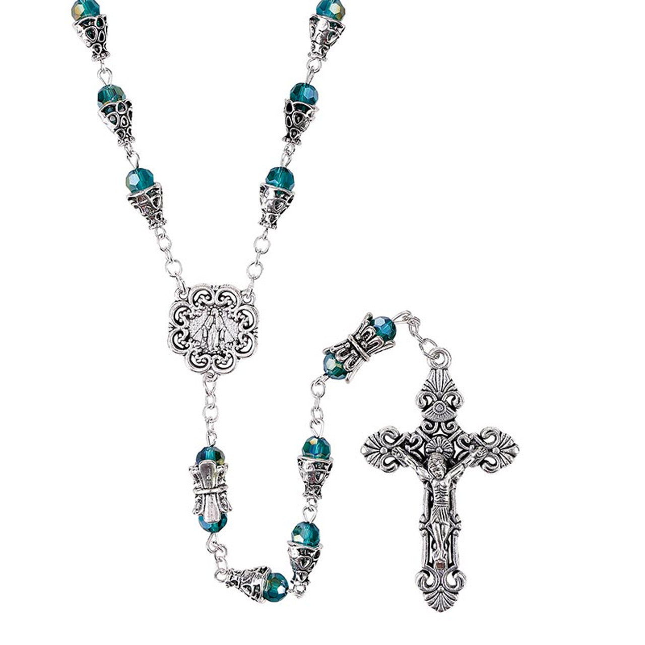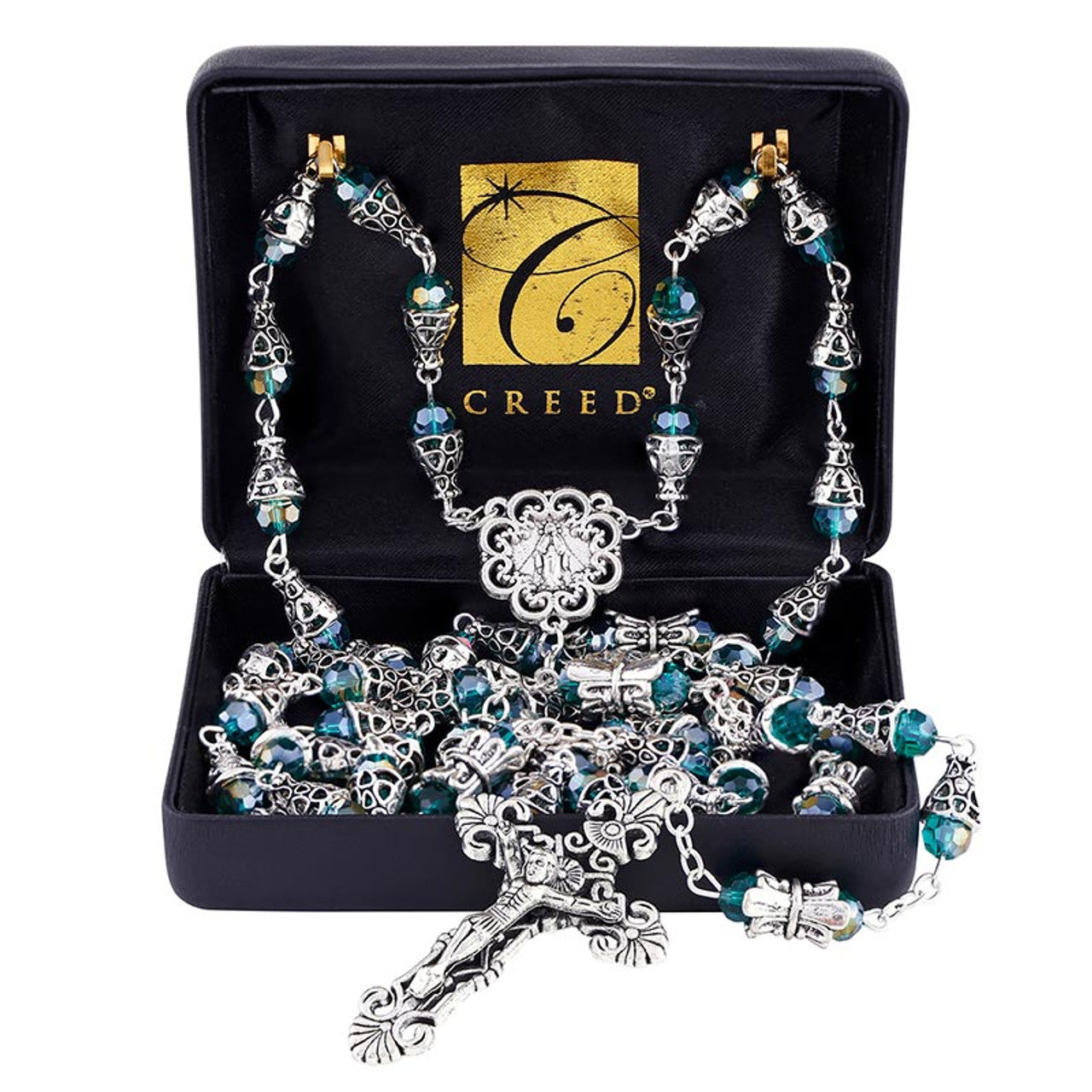 The Santiago de Compostela Collection honors the sacred pilgrimage to the shrine of Saint James - a journey of faith, penance, and devotion that has drawn Catholics for centuries. The silver filigree caps encasing each bead reflect the grandeur of the Botafumeiro, the censer that swings through the Cathedral of Santiago de Compostela, filling the sacred space with the fragrance of prayer. Shimmering crystal beads with an aurora borealis finish reflect the divine light that has guided countless pilgrims along the Camino, making these rosaries a symbol of spiritual endurance and heavenly grace.