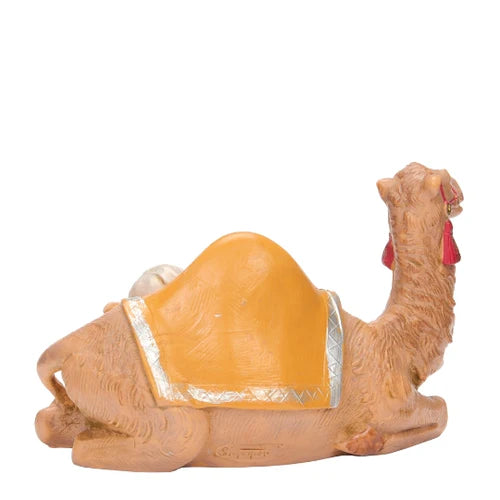 Cyrus depicts a young boy resting beside his camel, dressed in a green vest and rose trousers. Known for his love of animals, Cyrus was lost from his family but welcomed into King Balthazar’s caravan, only to be joyfully reunited with his parents in Bethlehem. A figure of hope, faith, and answered prayers, it adds rich storytelling to your nativity.