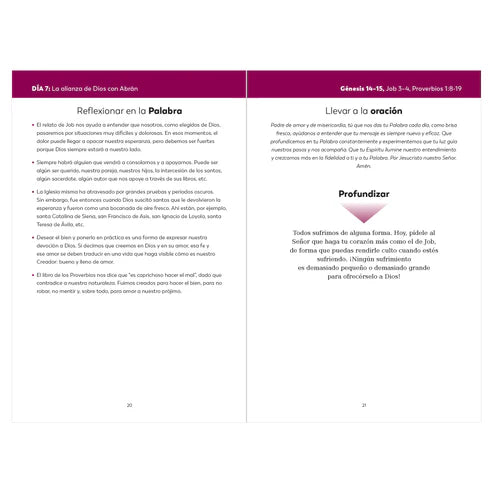 - La sección “Profundizar”, que presenta un contenido único relacionado con las lecturas de ese día y que va desde imágenes y preguntas y respuestas hasta puntos para la oración y formas de llevar a tu vida diaria lo que enseña la Escritura.