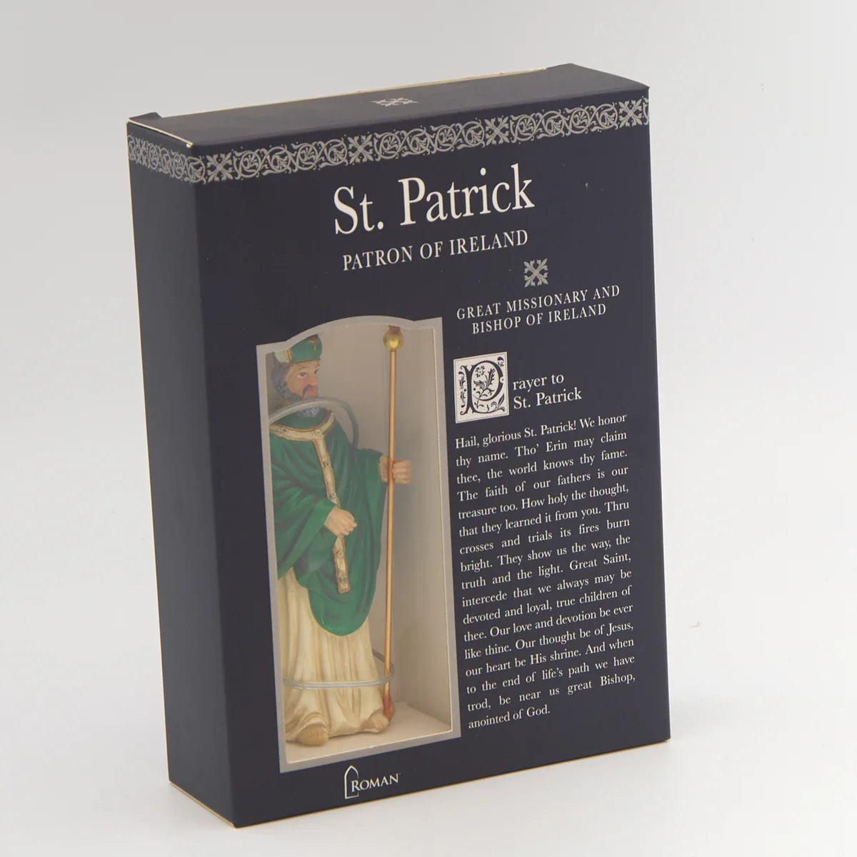 This finely crafted St. Patrick figure from the Patrons & Protectors Collection honors the beloved patron saint of Ireland. Depicted in bishop’s vestments with staff in hand, St. Patrick is remembered for his missionary zeal, deep faith, and tireless efforts to spread Christianity. A meaningful devotional statue that serves as a symbol of spiritual strength, protection, and cultural pride, perfect for home altars, prayer spaces, or gifting during feast day celebrations.